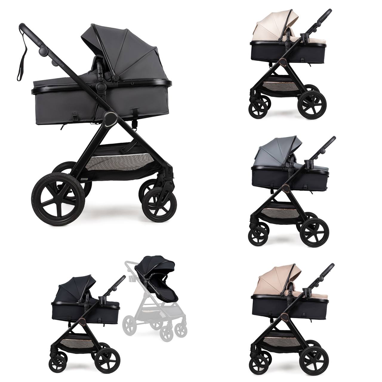 Ventura — це коляска-трансформер з одним універсальним блоком, який перетворюється з люльки у прогулянку.