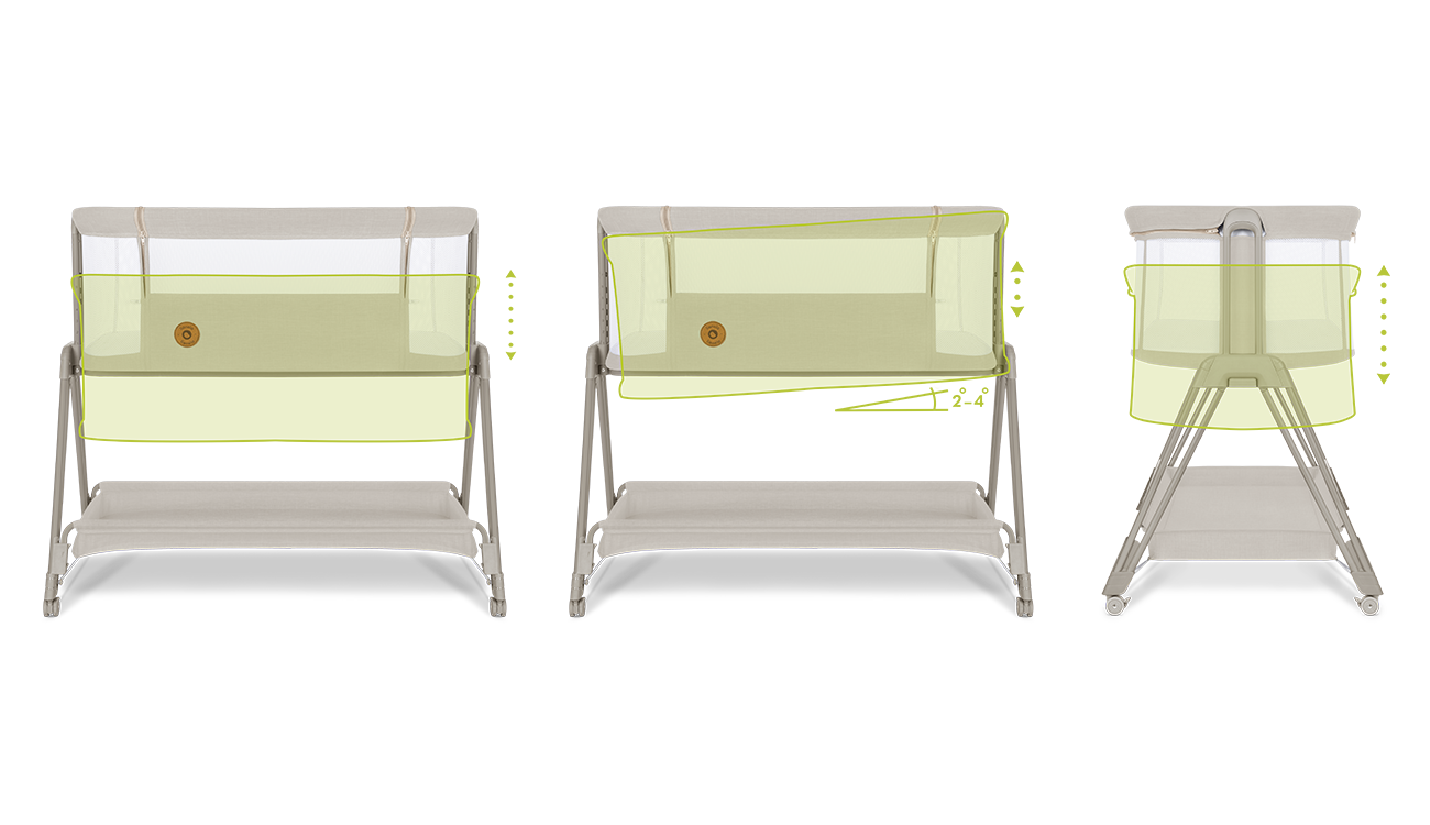 Lionelo Luna призначене для дітей від народження до приблизно 6 місяців або до досягнення ваги 9 кг. Каркас виготовлений з міцного металу, оббивка виконана з м’яких, гіпоалергенних та приємних на дотик матеріалів. Ліжечко має кілька рівнів регулювання висоти, що дозволяє точно вирівняти його з дорослим ліжком. Бокова панель легко опускається та фіксується у потрібному положенні. Коліщата обладнані гальмівною системою, яка забезпечує стабільність конструкції. Матрац середньої жорсткості підтримує правильне положення тіла немовляти під час сну.