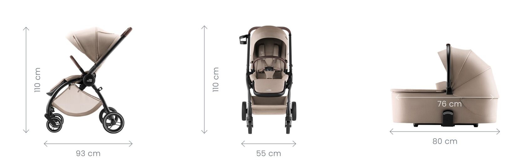 Шасі Britax Römer RIO створене з високоякісного алюмінію — воно легке, але надзвичайно міцне. Завдяки компактній системі складання однією рукою, коляску можна зручно транспортувати навіть у невеликому багажнику автомобіля.