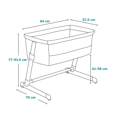 Зовнішні габарити (висота × довжина × ширина): ~ 77-93 × 94 × 58 см (залежно від рівня висоти)