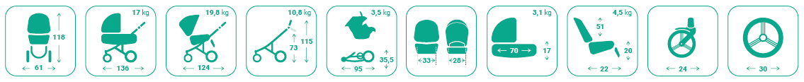Люльки в колясці Bebetto B 42 дуже легкі, важать трохи більше 3 кг кожна. Завдяки тому, що їх можна швидко скласти (по горизонталі), стало значно зручніше транспортувати та зберігати коляску. Пластикове дно довговічне і легко миється. Профільована форма дна дозволяє люльці м'яко погойдуватись, коли вона стоїть на підлозі.