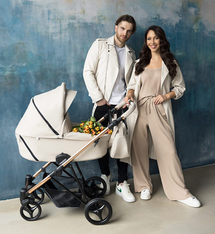 Коляска преміум-класу Bebetto Yoddi 2в1 поставляється в екошкіряних оббивках на блискучий рамі мідного кольору. Мідні елементи ручці та бампері відповідають кольору рами та надають колясці додаткової привабливості.