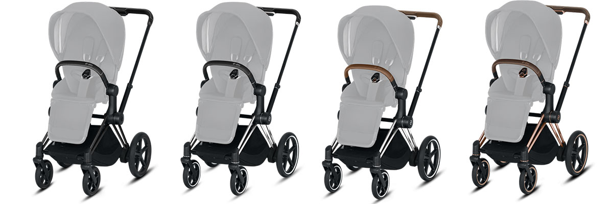Інтелектуальний, інтуїтивно зрозумілий і виключно інноваційний, e-Priam дає вам можливість легко ковзати вгору і вниз по схилах і легко адаптується до пересічених місцевостей, таких як пісок, гравій або булижники. Індивідуальний дизайн. Виберіть свою електронну Ppriam згідно з вашим індивідуальним смаком. Комбінуйте раму з широким вибором комплектів тканин і змінюйте зовнішній вигляд своєї коляски в будь-який час. Універсальна і стильна, рама доступна в декількох кольорах: сучасний матовий чорний, вишукане рожеве золото і хром з чорними або коричневими деталями.