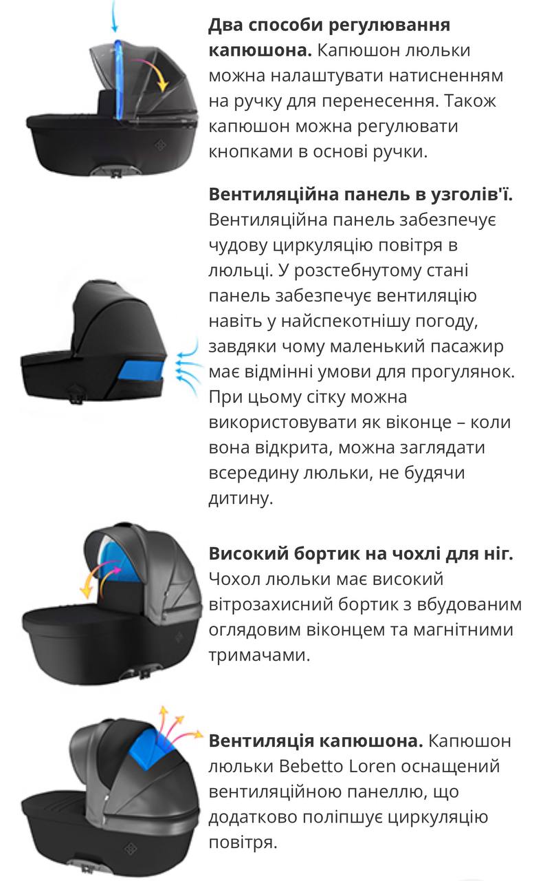 Комфортна люлька: Люлька – це найважливіша частина коляски, адже саме тут ваш малюк проводитиме перші прогулянки на свіжому повітрі. Для комфортного сну та відпочинку забезпечено: