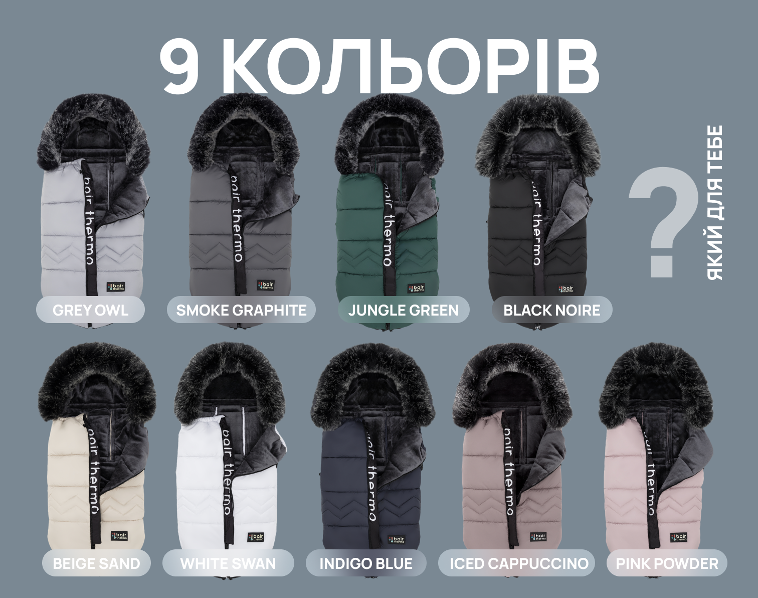 Оновлена версія отримала декілька нових кольорів та вдосконалений крій. Розмір конверта Bair Alaska Thermo змінився: тепер він став ще більшим та комфортнішим для вашого малюка. Зараз він має розмір 100х48 см. Спеціальний крій спинки конверта плавно повторює контури сидіння, завдяки чому конверт не коротшає, коли дитина сидить. Широка вставка з брудовідштовхуючої тканини в ніжках дитини, полегшить догляд за виробом. Просто відкривається і закривається на блискавку. Дві блискавки з боків застібають конверт на 1/3, це передбачає розкриття тільки ніжок малюка. Є додаткове утеплення голови дитини за допомогою стягнутих шнурків верху. Для фіксації на колясці передбачені універсальні отвори, які дозволяють підлаштувати ремені безпеки по висоті. Це зручно у використанні з будь-якими колясками, санками або автокріслами. Додатково конверт кріпиться до спинки прогулянкової коляски широкою вставкою на резинці. Особливість: