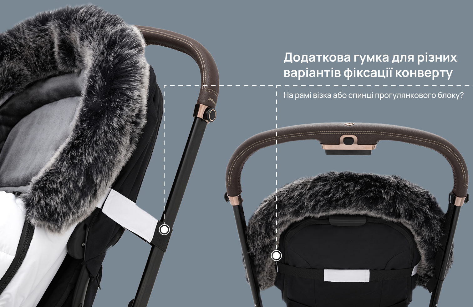 Два ременя з липучками, для кріплення за раму або спинку коляски.
