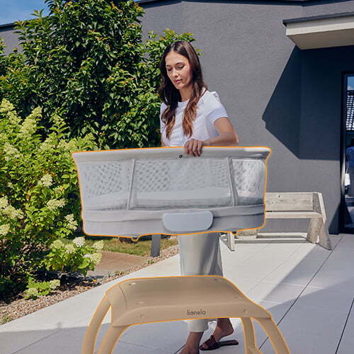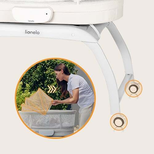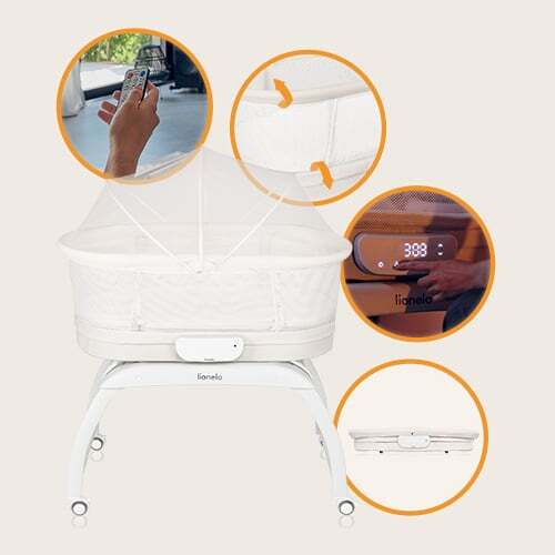 Ергономічна люлька Ліжечко Coral забезпечує дитині безпечний і зручний простір для відпочинку. Середньо жорсткий пінний матрац із щільністю T25 дбає про правильну підтримку хребта та гарантує вільний потік повітря. Боки з сіточки Боки з сіточкової тканини забезпечують постійну циркуляцію повітря, запобігаючи перегріванню малюка. Вони також забезпечують чудову видимість для дитини і батьків, сприяючи контакту з навколишнім світом і даючи відчуття безпеки. Колиска Вбудований механізм дозволяє рівномірно колисати люльку. М'які рухи заспокоюють малюка, нагадуючи йому часи в утробі матері. Під час колихання дитина перебуває в горизонтальному положенні, яке підтримує рівномірний розвиток хребта. Батьки можуть вибрати одну з 5 швидкостей колихання, які налаштовуються за допомогою пульта або панелі управління. Вбудовані ваги Вбудовані ваги дозволяють зважувати малюка навіть між візитами до педіатра. Просто вийміть дитину, обнуліть пристрій, а потім знову покладіть її в ліжечко, щоб дізнатися вагу. Функція заспокоєння Ліжечко Coral дозволяє відтворювати мелодії для заспокоєння та заколисування дитини. За допомогою пульта можна вибрати один із 12 звуків – шумів, звуків природи чи колискових. Білий шум маскує зовнішні звуки та покращує якість сну. Рама Чотири колеса дозволяють легко переміщувати ліжечко залежно від потреб. Завдяки цьому малюк завжди може бути поруч, навіть під час домашніх справ. Колеса підходять для використання як вдома, так і на вулиці, а москітна сітка забезпечує додатковий комфорт. Знімне ліжечко Знімне ліжечко дозволяє переносити дитину без використання рами. Дно ліжечка має спеціальні ніжки, що захищають від забруднень. Функція колиски працює навіть після зняття з рами. Зручність користування Управління можливе через пульт або сенсорну панель. Таймер дозволяє контролювати час колихання. Знімний чохол легко прати, а складана гондола зручна для подорожей з дитиною.
