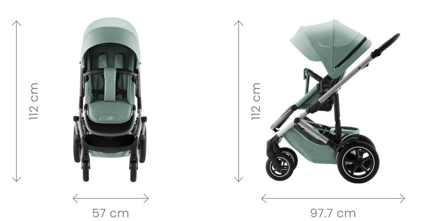 Розміри складеної коляски: 90 x 40 x 57 см Розміри у розкладеному вигляді: 98 х 57 х 112 см Розмір спального місця (люлька): 77 x 35 см Розмір спального місця (прогулянкова): 30 x 23 см Ширина крайніх точок (см): 57 Вага коляски з люлькою (кг): 12,7 Вага прогулянкової коляски (кг): 13,8