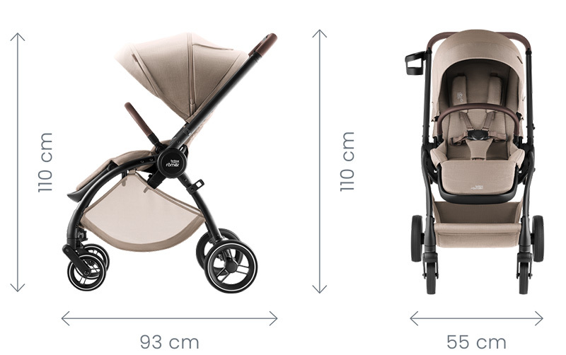 Шасі Britax Römer RIO створене з високоякісного алюмінію — воно легке, але надзвичайно міцне. Завдяки компактній системі складання однією рукою, коляску можна зручно транспортувати навіть у невеликому багажнику автомобіля.
